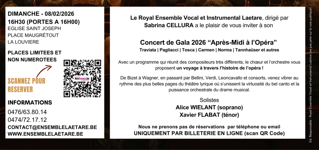 CONCERT DE GALA Dimanche 8 février à 16h30 Eglise Saint-Joseph Place Maugretout La Louvière